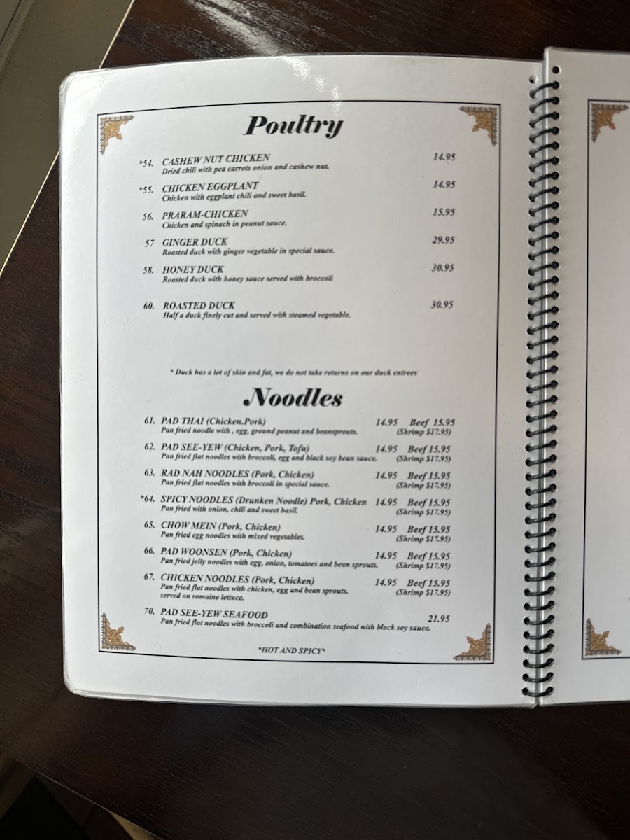 Thai Classic in Paso Menu